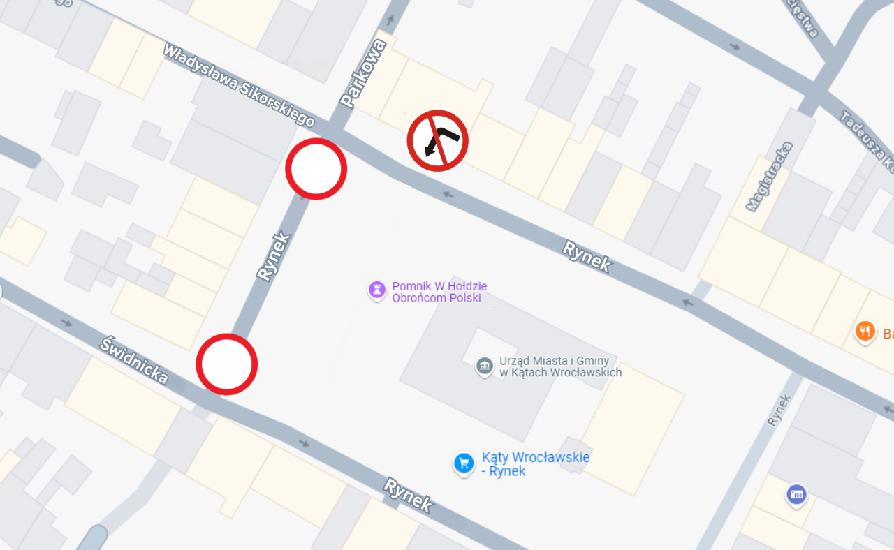 – wjazd do Rynku od zbiegu ulic Sikorskiego/Parkowa/Rynek zostanie zamknięty